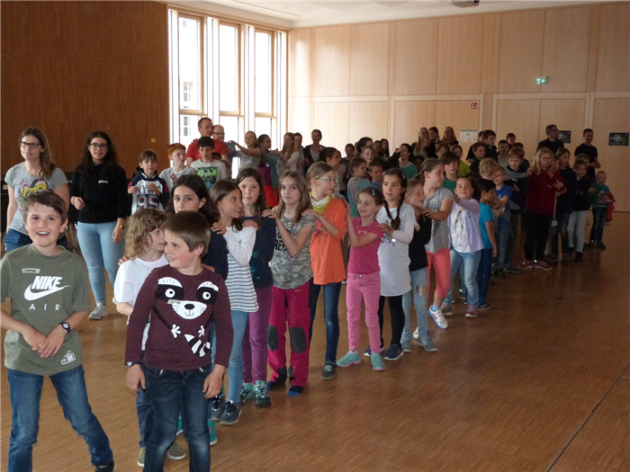 Wir teilen nicht in Alter sondern in Klassen, alle die in der 2.-7. Klasse sind, können mit machen.